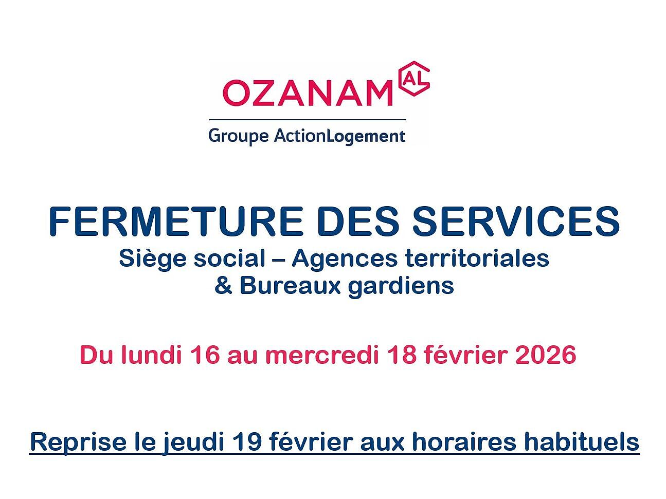 Fermeture février 2026