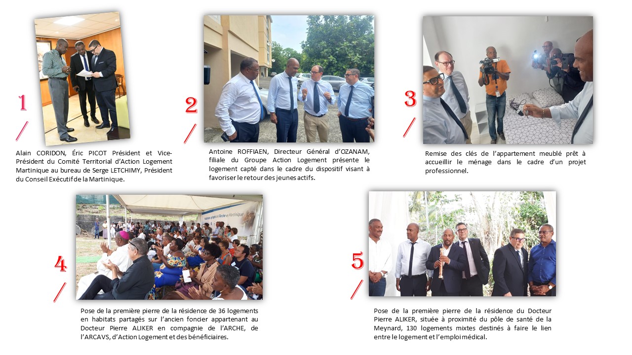 - La visite et la remise des clés du 1er appartement, un T2 de 46m² capté par la filiale OZANAM et proposé en meublé aux jeunes actifs de retour au pays dans le cadre de la mise en œuvre de la convention Collectivité Territoriale de la Martinique / Action Logement signée le 19 avril 2023. Cette convention prévoit la mise à disposition de jusqu’à 50 logements dans l’année.